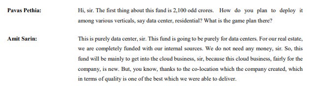 Real estate developer Anant Raj, for instance, has a separate “data center division” — even launching their own cloud service to rival the likes of AWS. They are trying to raise ₹2,100 crore in a fresh issue, almost all of which will go to their data center projects. In return, they think they can reach ₹1,200 crore in data center revenue by FY27. Here’s what they said in their Q2 FY25 earnings call: