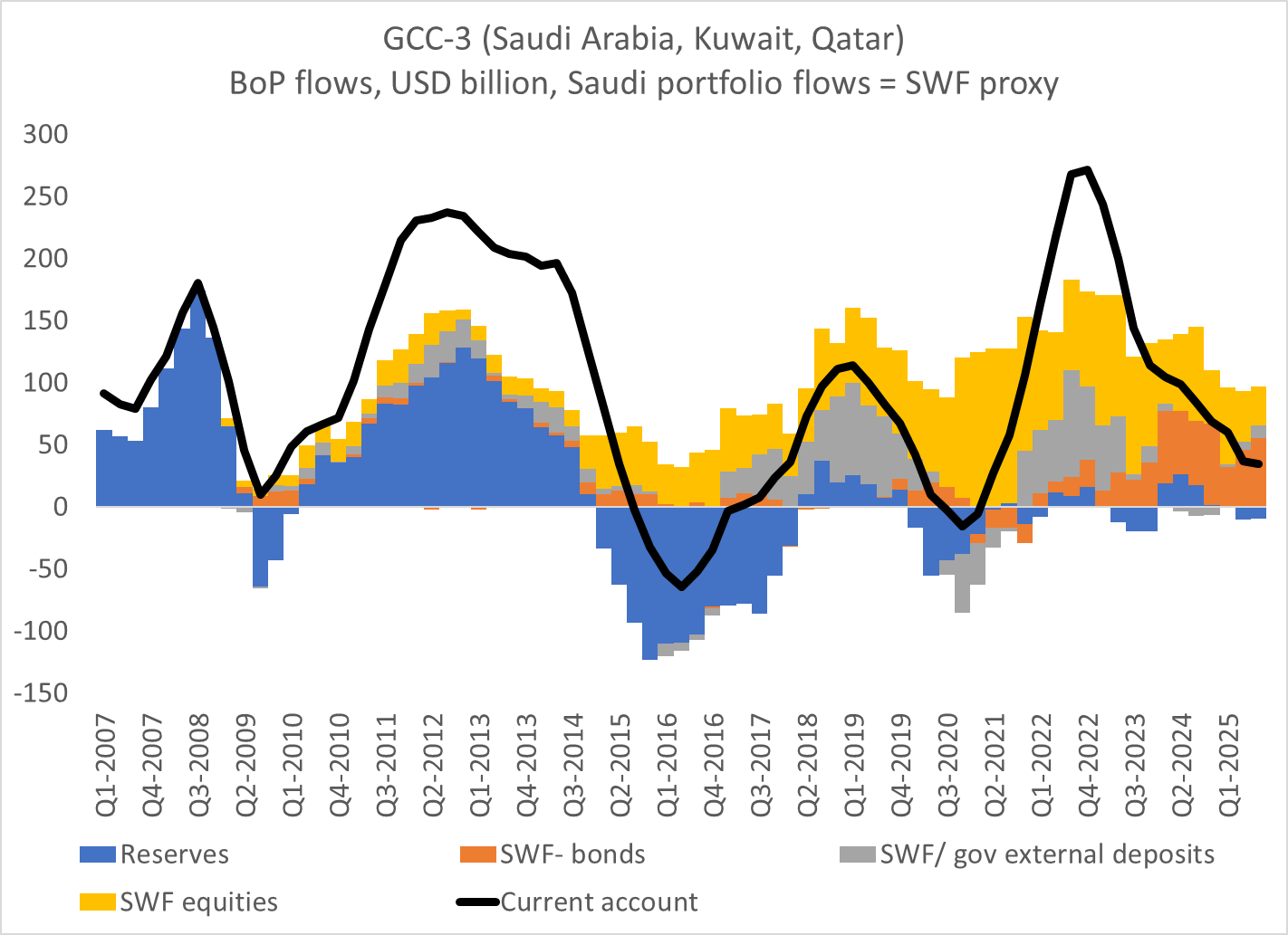 Rather, Gulf states channel their reserves through their own sovereign wealth funds (SWF) into global equities — or petro-equities.