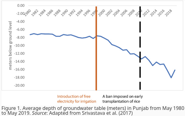 Hydrologically, Punjab is a bad place to grow rice. But the government has guaranteed paddy procurement, at an ever-increasing price. This makes rice the lowest-risk crop. Meanwhile, the government also provides free, unmetered electricity, which power 14 lakh tubewells — each of which run with no marginal cost.