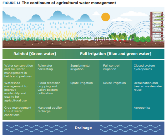 That tiny share of blue water punches above its weight. Less than 7% of the world’s total agricultural area is “irrigated land”, but that tiny sliver produces two-fifths of the world’s food. This is because rainfall can’t be timed like irrigation. Blue water can be delivered at exactly the right time, during specific growth stages when crops need it most. And so, the productivity of every litre goes up. You get more food per unit of water, and per unit of land.