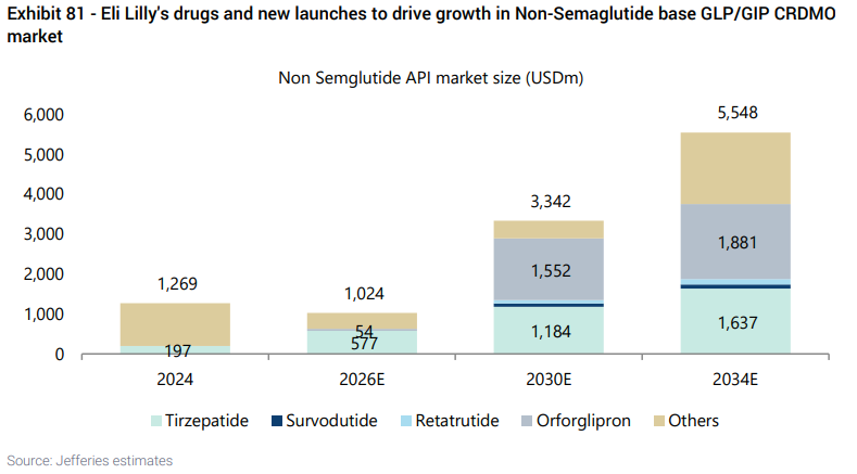 Right now, the world’s biggest drug story is GLP-1 agonists, like Ozempic. But these are tricky to make. Producing them at scale, in particular, takes advanced chemistry. According to Jefferies, the companies that discovered these drugs don’t want to put together an entire supply chain for something this complex.