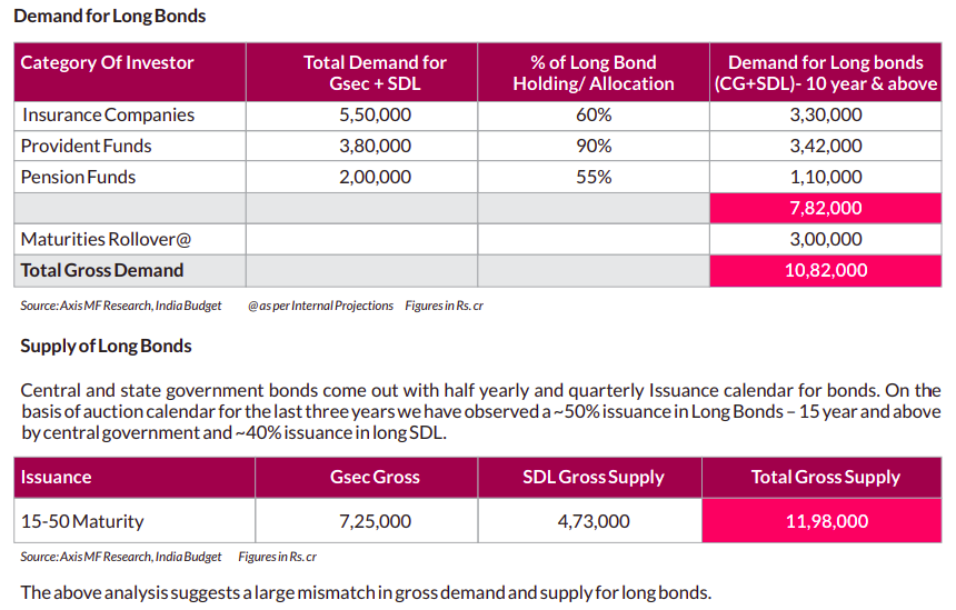 Insurers and pensions: Life insurers’ inflows are slowing, and the National Pension Scheme (NPS) has lifted its equity allocation cap from 15% to 25%. That means more fresh money is going into equity, actively taking away the allocation meant for long-term bonds.