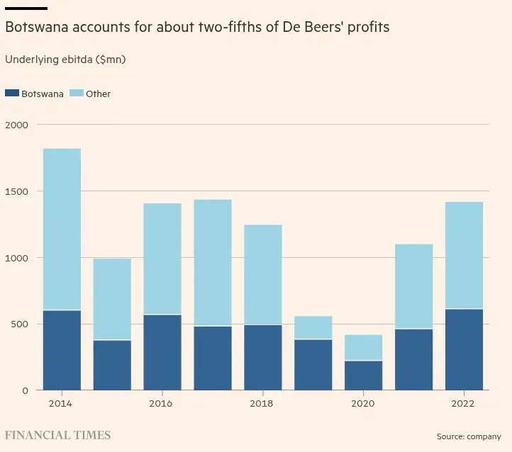 When Anglo put De Beers up for sale, Botswana’s president Duma Boko was unambiguous about what he wanted — not a larger stake, but control. His exact words were: “It’s our people who are running this country, and we said we want De Beers, and we are going to take it.“ A few weeks ago, The Economist reported that Botswana has now quietly dropped that position, and is pursuing “at least 25%” — a minority stake. An executive at Debswana, the joint venture between the Botswana government and De Beers, told the publication: “It probably doesn’t make sense to go all out.” The fact that even the country which mines most of De Beers’ diamonds has pulled back from the idea of taking control tells you something about how people closest to this business actually feel about its trajectory.