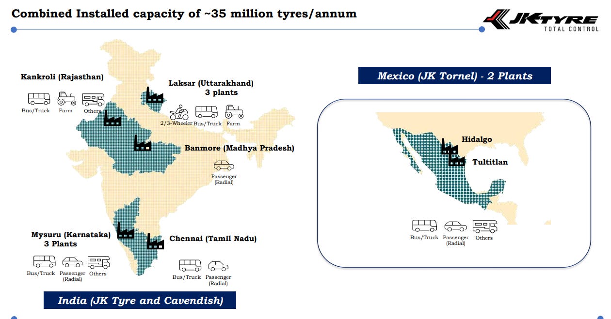 Like Apollo, JK Tyres has diversified its geographic market too: serving India and the Americas simultaneously. The company operates eleven manufacturing plants, and while nine are in India, two of those, housed under the JK Tornel brand, are in Mexico. This gives JK Tyre a unique bridge to markets across the Americas.