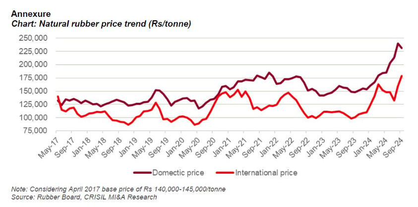 Tyres businesses are heavily dependent on commodity prices. 80-85% of a tyre's raw material costs come from natural rubber, synthetic rubber, carbon black, and steel wire.