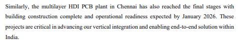Across the PCB supply chain, major Indian investments are now materializing. In September 2025, Syrma SGS announced India's largest PCB manufacturing facility in Andhra Pradesh—a ₹1,593 crore project targeting everything from single-layer to high-density interconnect boards. This also aligns with AP’s targeted industrial policy in electronics — something we covered recently. Syrma also entered a joint venture with South Korean firm Shinhyup Electronics to make both PCBs and CCLs.