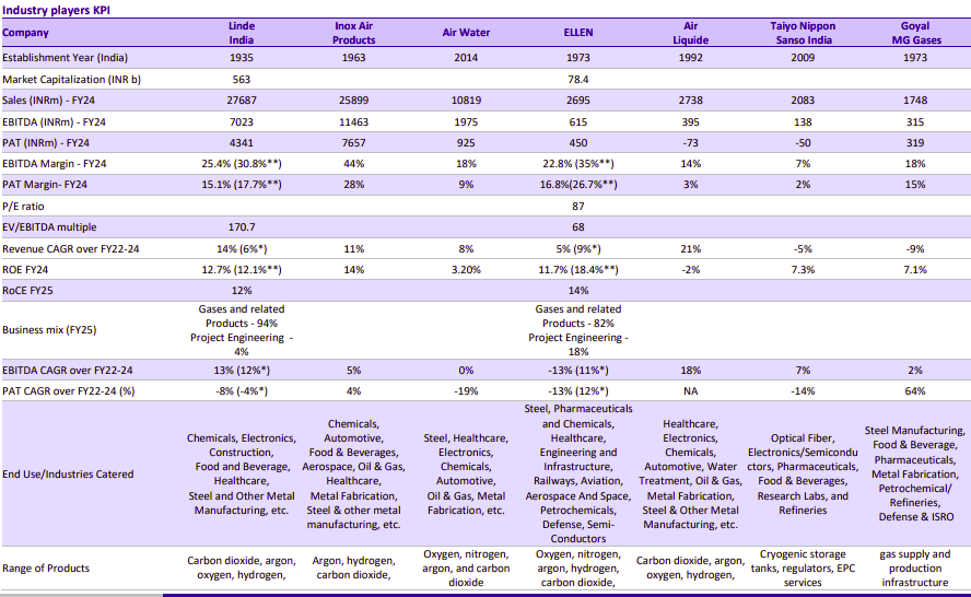 Globally, three names dominate: Linde, Air Liquide, and Air Products. Add Taiyo Nippon Sanso which specializes in gases for the electronics industry specifically, and you have the global oligopoly. In India, Linde India is the largest listed player, with a presence in steel, healthcare, and now semiconductors.