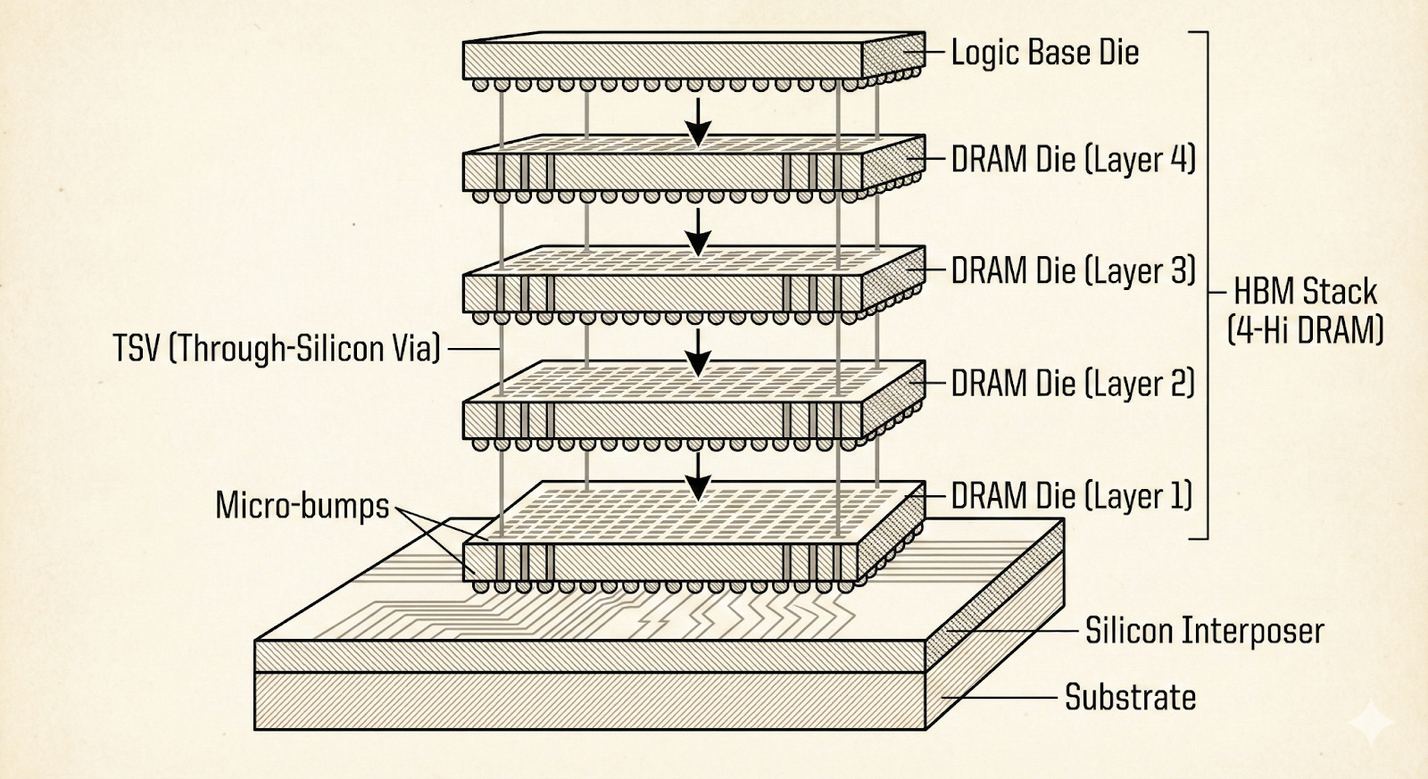 AI server racks work on the same principles, just scaled up dramatically. A single DRAM chip would be too weak to run the average AI model. So, you stack multiple DRAM chips on top of each other and connect them intricately to a GPU — that’s what they call “high-bandwidth memory”. It can feed data to hungry AI chips at terabytes per second, far beyond what normal DRAM can do. Every cutting-edge AI training system, from NVIDIA’s H100 chips to Google’s TPUs, relies on HBM.