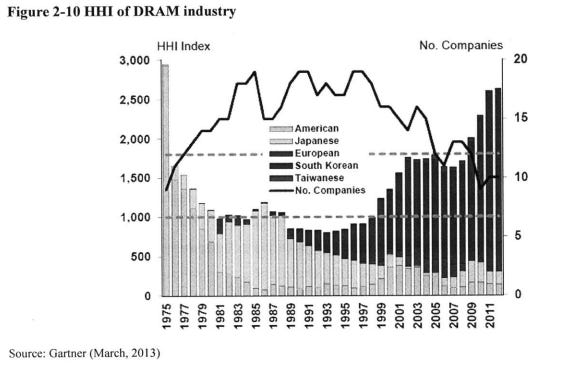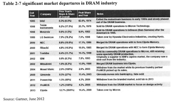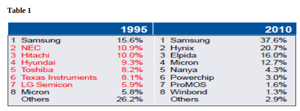 By 2012, with the exception of US-based Micron, the market was taken over almost wholly by South Korea.