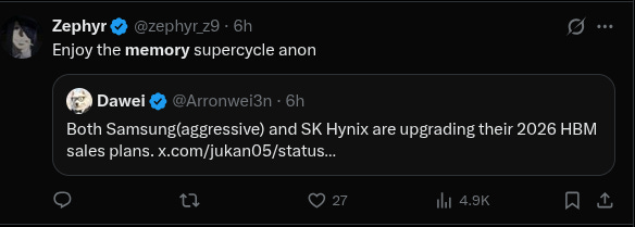 Meanwhile, Samsung is trying to play catch-up. Its HBM3 chips weren’t as efficient as those of Hynix and were slower to ramp. By the time Samsung had its product ready, NVIDIA had already locked in orders with Hynix and Micron. Samsung has since improved, but the race to the next-generation HBM4 chips is already on.
