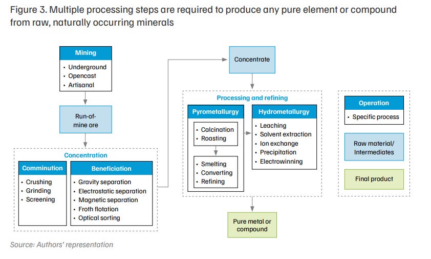 The story inevitably begins with China’s dominance — not just in mining, but also refining.