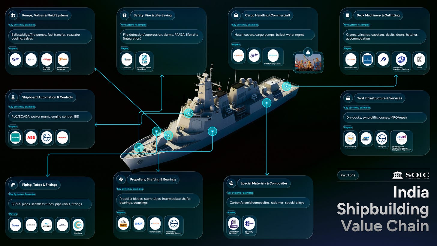 Hi folks, I am Kashish Kapoor and I went into this conversation with Ishmohit (SOIC Finance) thinking shipbuilding was one of those “important but uninvestable” sectors. Too slow, too bureaucratic, too government-heavy, too far from anything that resembles consumer demand.