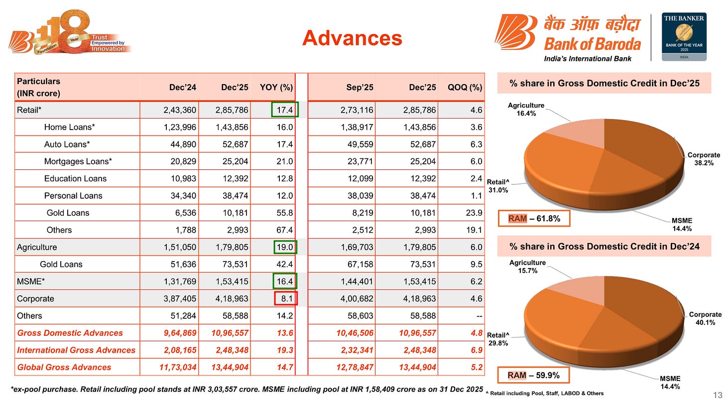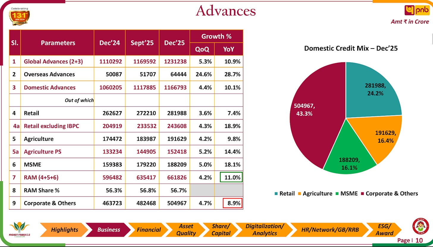 PNB — which lagged in retail for years — saw its RAM book growing 11%, outpacing its corporate book growth of ~9%.