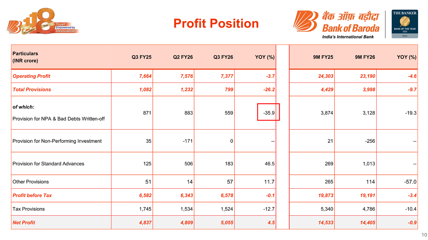 Then, there’s a provisioning angle. These banks have spent years cleaning up their balance sheet, and the results are finally visible in their financials. With fewer bad loans, the “tax” of provisioning is lower. Bank of Baroda, for example, saw a ~36% YoY drop in NPA provisions this quarter — and that falls straight to the bottom line.