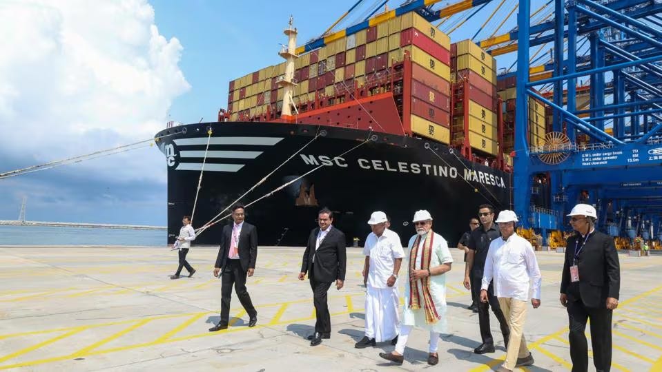 But India already has a brand-new deep-water port that can handle the same traffic. Just last year, India inaugurated a new port facility at Vizhinjam in Kerala. That’s a deep water port as well, and sits just 10 miles away from the “international East-West shipping lane”. The Vizhinjam port, too, was built with the same promise — of relieving India’s dependence on foreign ports.