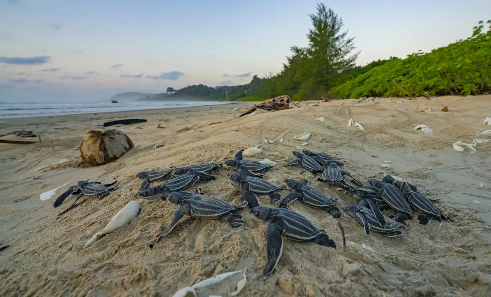The region is also woven into the lifecycles of animals that range far beyond the island. The leatherback turtle, for instance, depends on Galathea Bay as one of its most important nesting sites in the Indian Ocean. Until 2021, in fact, the bay was a designated wildlife sanctuary for this very reason. Then, in 2021, just as the port was coming up, it was denotified.