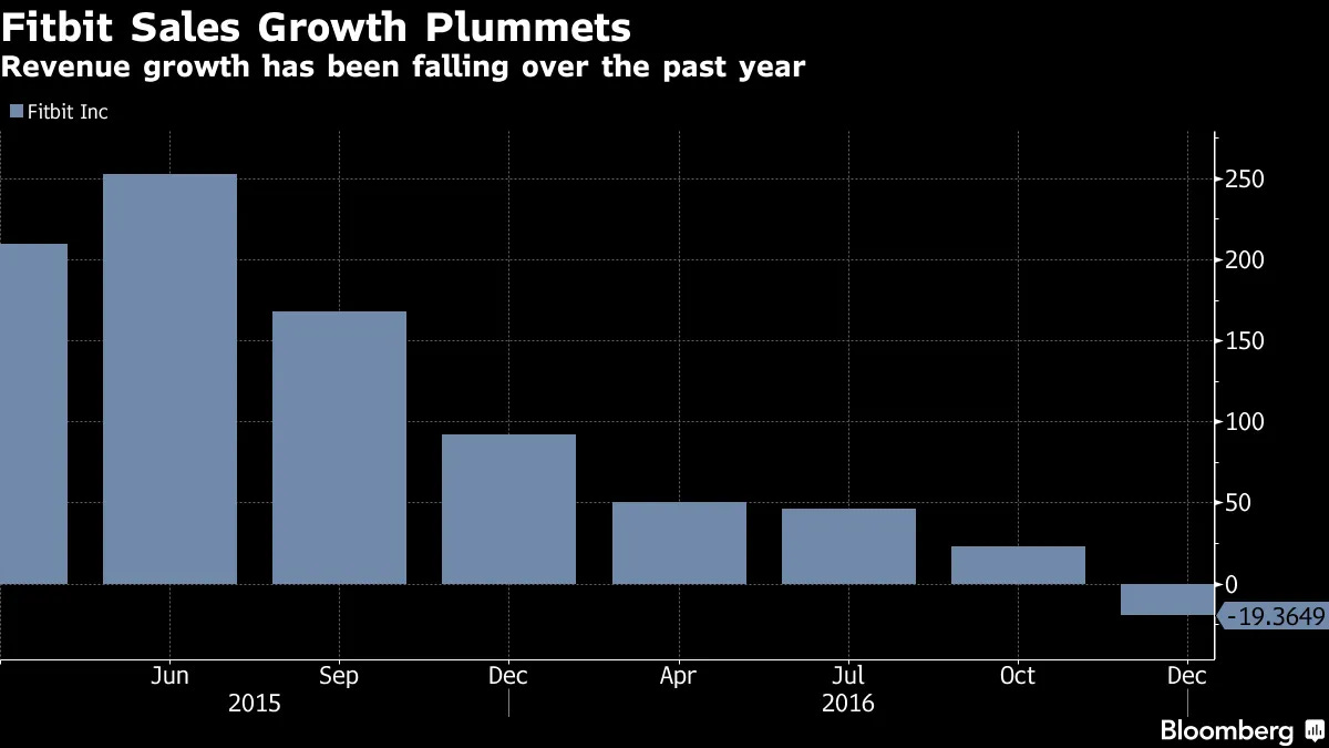 It was a hit. There were pedometers before this, but nobody had done like this before — not well anyway. Revenue grew from about $5 million, in 2010, to $745 million by 2014. By the time they went public in June 2015, they held over a quarter of the entire global wearables market, shipping 21 million devices that year. For a company that essentially made a glorified pedometer, that was a remarkable position.