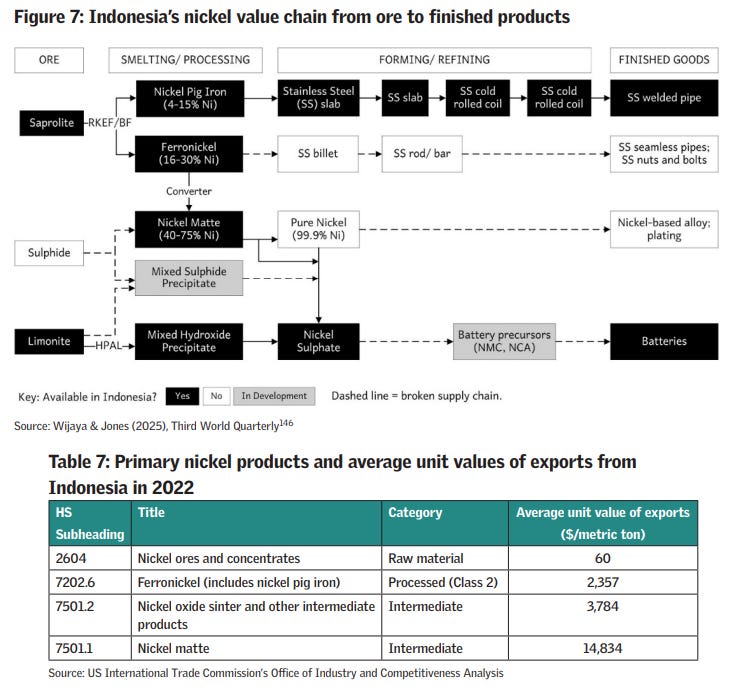 Indonesia, for instance, tried resource nationalism. It had large reserves of nickel, and instead of exporting the metal, they banned exports and forced domestic processing. As a result, nickel-related exports grew from $6 billion in 2013 to $30 billion in 2022.
