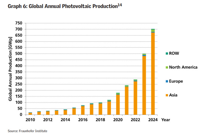 Take solar energy: roughly 85% of the world’s solar PV output comes from China.