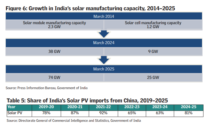 Or take our own experience. Our solar manufacturing expanded on the back of schemes like PLI or ALMM. And yet, about four-fifths of solar PV imports still come from China. Our own industry is already facing a supply glut. Nearly all of our panel exports go to a single market — the United States — and they’re hardly a trading partner one can trust.