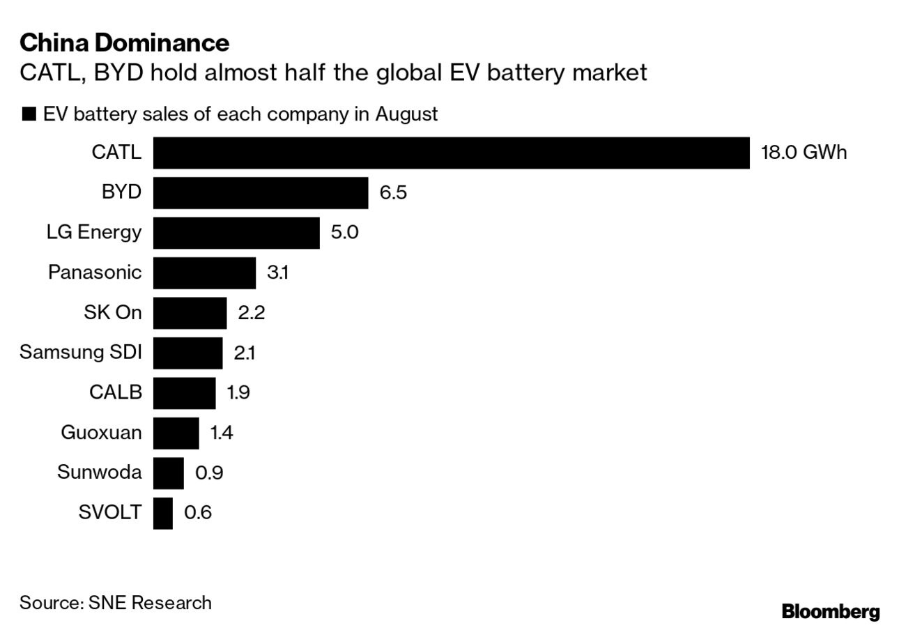 Or consider batteries: in the first half of 2025, just two Chinese companies — CATL and BYD — made more than half of the world’s EV batteries.