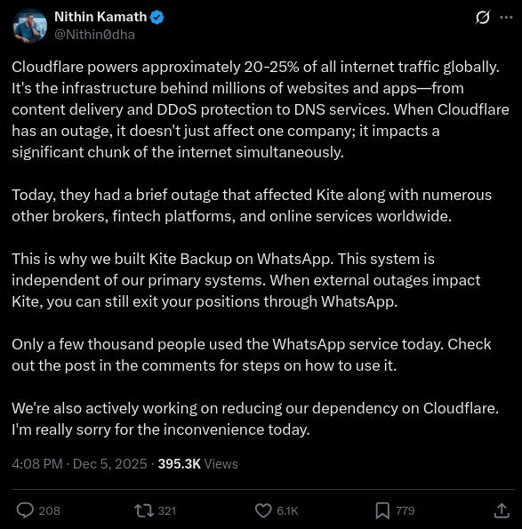 One of the most critical of these is Cloudflare. While Cloudflare is a private company, it is best understood as a global utility — it is to the internet what a grid operator is to our electrical systems.