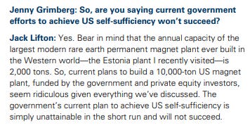 In critical minerals, the situation looks far more one-sided. China controls ~70% of global rare earth mining. Its tightening of export controls has proven to be a powerful retaliatory tool. In response, the US has eased some semiconductor restrictions — a tacit acknowledgment of mutual dependence. Meanwhile, they’re also trying to develop alternatives to rare-earths. However, Jack Lifton, the co-chair of the Critical Minerals Institute, thinks that for the US, self-sufficiency in critical minerals may just be a mirage.