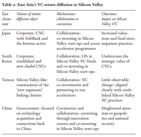Instead, they followed a different strategy — they sent their capital to Silicon Valley first. Many state-backed funds and corporate VC funds from East Asia established offices in the Valley. They learned the rules of the game, like deal structures, due diligence, and so on. The funds of Samsung and Tencent have become major investors in American startups.