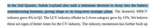 We’ll be looking into the latest quarterly results of the two biggest companies in this space: Tata Motors and Ashok Leyland. Both drove a strong rebound after a subdued first quarter. Each of them has enjoyed similar tailwinds, while also playing nuanced strategies.