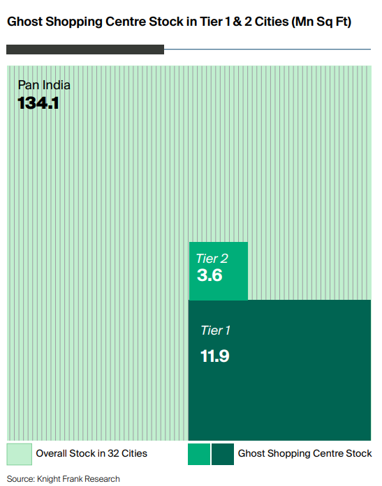 The real estate consultancy Knight Frank has been tracking this problem for a few years now. In its latest edition of the “Think India Think Retail” report, the firm argues that these dying malls are not just an eyesore, but also a huge pool of underused capital and land. Instead of treating them as failures, the report tries to measure how big this ghost stock is, where it sits, and what it would take to bring at least some of it back from the dead.