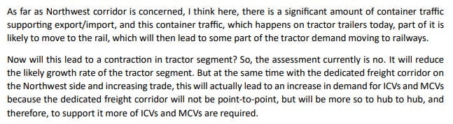 An interesting section in TMCV’s earnings call was on the dynamics of how India moves freight.