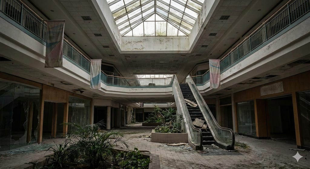 These are the kinds of malls many people have seen at some point: places that were lively a decade ago but slowly lost their big stores, their cinema, or their supermarket. And once those “anchor” tenants left, the smaller shops followed suit. What’s left is usually a building that still calls itself a mall but doesn’t function like one anymore.