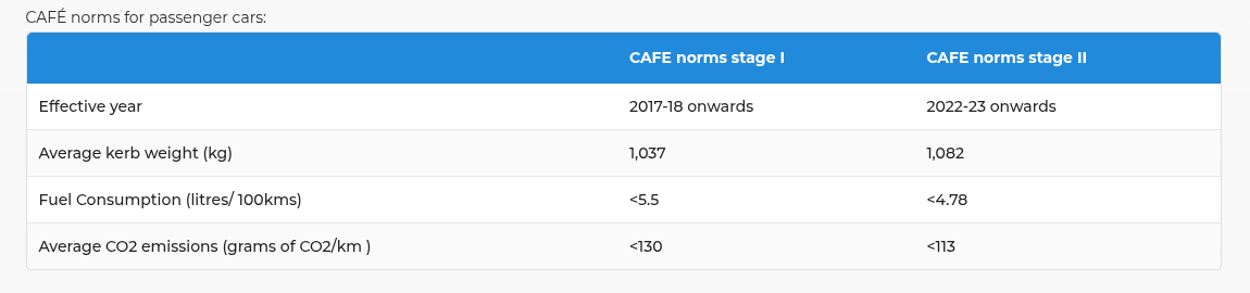 India has already done two rounds of this. CAFE-1 came in around 2017–18, CAFE-2 from 2022.