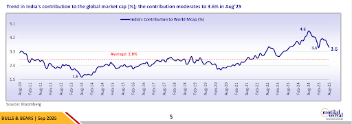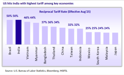 On top of valuations, trade frictions have added to the headwinds. The U.S. has imposed a 50% reciprocal tariff on India, among the steepest faced by any major economy.