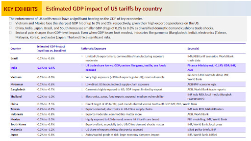 The GDP-level impact of these tariffs looks modest at –0.2% to –0.8%. But sector-level damage is sharper, with textiles, gems & jewelry, and seafood exports taking a hit, as per the Motilal Oswal report.