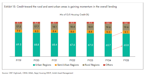 Credit is flowing more into smaller towns and villages too. Between FY19 and FY25, the share of outstanding housing credit going to rural and semi-urban India has edged higher.