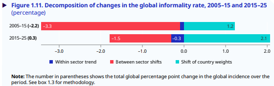 This is, in part, a matter of “composition effects”. Countries with very high levels of informality, particularly in sub-Saharan Africa, also have the world’s fastest-growing populations. Even if most countries are making slow progress, these growing populations pull the world average down.