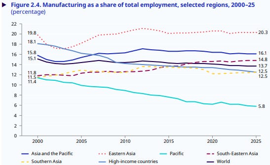 Behind that apparent stability, however, the assumptions we once held behind growth and employment are losing their grip. We’re no longer on a clean arc towards progress — the informal economy is growing; structural transformation has decelerated; the manufacturing playbook is faltering. And on top of all this, technology has added to the confusion.