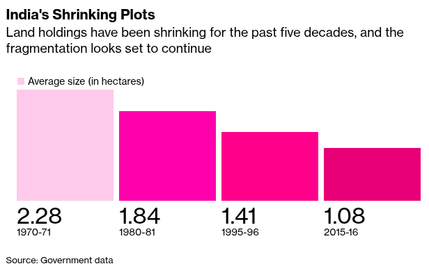 However, there’s more to this story. This shift is, at least, partly driven by a structural problem in Indian agriculture — that it’s too dependent on small, often ill-equipped farmers. And their landholdings are shrinking rapidly — the average farm size has decreased from 2.28 hectares in 1970-71 to just 1.08 hectares in 2015-16, making efficient production increasingly challenging.