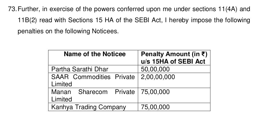 Over the nine months that SEBI studied, it spotted a total of ₹7.41 crore of illicit gains that the Profit Makers raked in through this scheme — ranging from ₹53.84 lakh that Partha Sarathi Dhar profited by, to ₹4.37 crore lapped up by the company SAAR Commodities Private Limited. There may well be more.