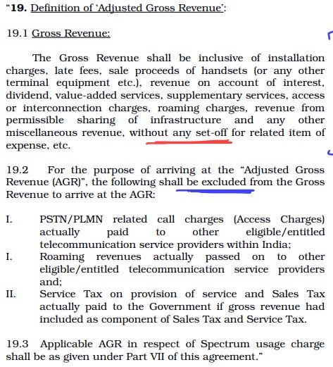 These licenses — though not for mobile consumer services — were issued under the same old revenue-sharing regime from 1999. They contain the same critical clauses, including the broad definition of “gross revenue.” Once the Supreme Court upheld the government's expansive interpretation of AGR in its landmark October 2019 judgment, any licensee operating under that 1999 licensing framework was suddenly caught by that same interpretation.