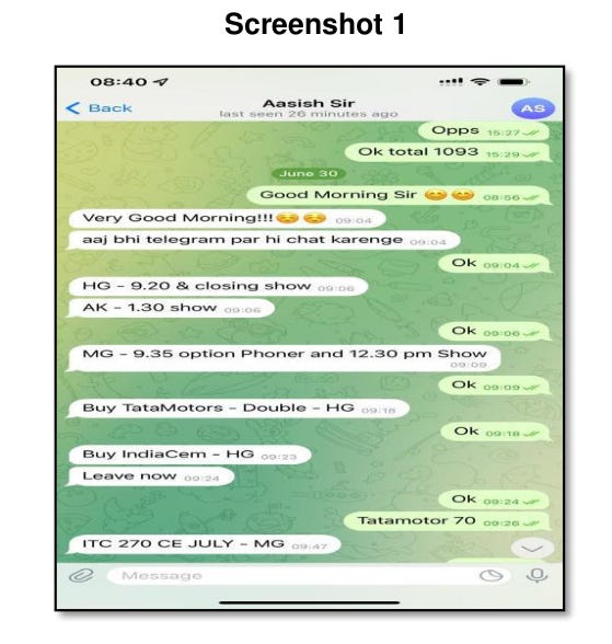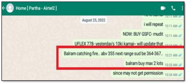 SEBI went through WhatsApp chat records, call data records, and Telegram messages, all of which pointed to one thing: advanced information sharing between guest experts and profit makers. In many cases, there was clear proof that guest experts were in touch with these Profit Makers. And by checking the timing of these, SEBI found that Profit Makers would place their buy orders within minutes of receiving these messages — and would close their positions immediately after those recommendations went public.