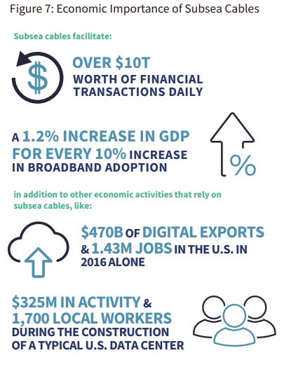 And this diversification is really necessary. Consider this: there are only about 60 specialized cable ships in the world, and huge Chinese cable repair companies run many of these ships. In a conflict, access to these ships could potentially be denied.